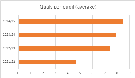- Over 200 qualifications achieved from Year 7 upwards within one year